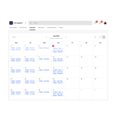 Hos oss får du inte bara kunskap, du får hållna rum. Våra lärare vägleder live varje vecka med intuition, värme och livserfarenhet. För dig som söker något mer än bara en träningsform.